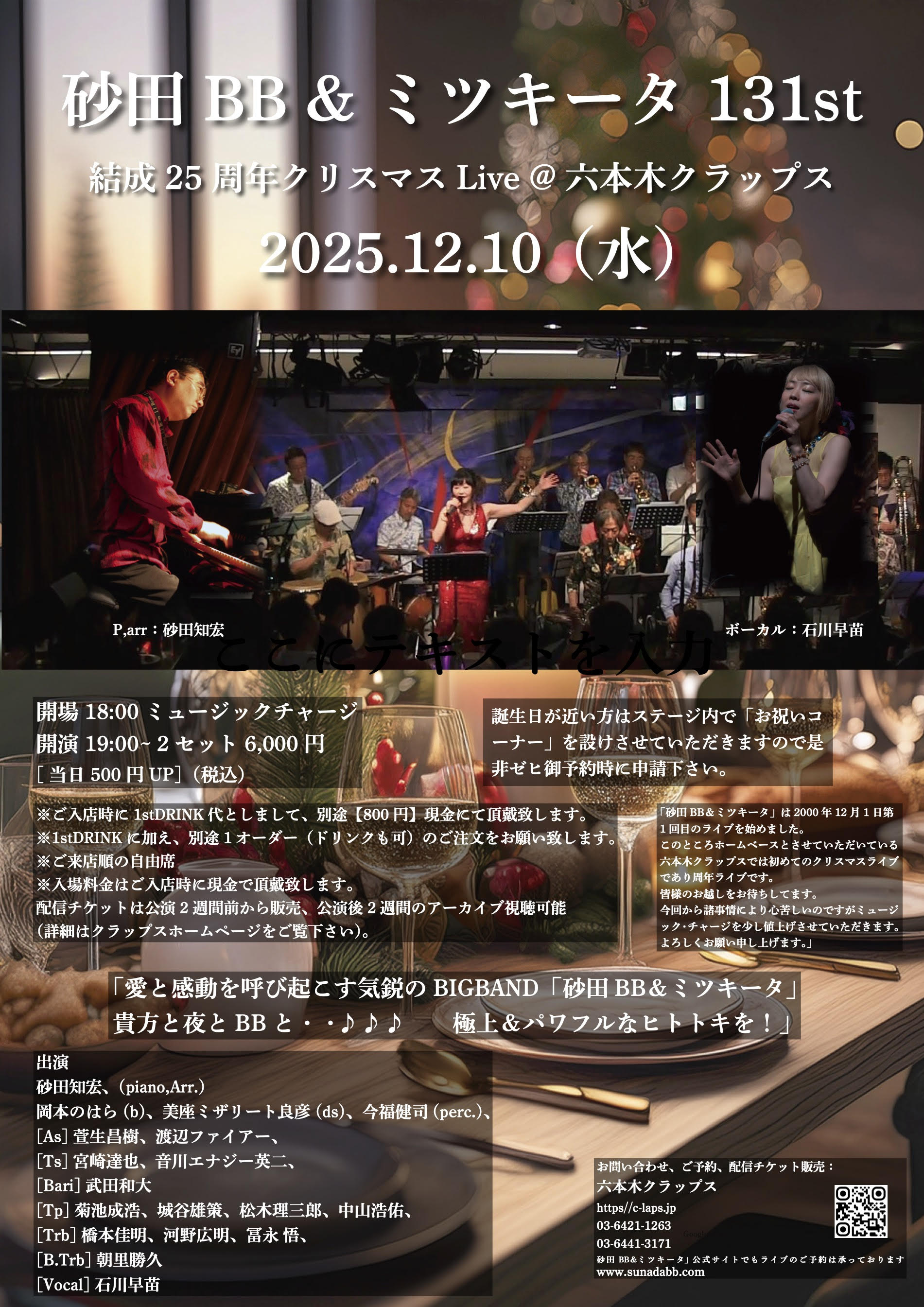 ≪砂田BB&ミツキータ131st 結成25周年クリスマス Live@六本木クラップス≫